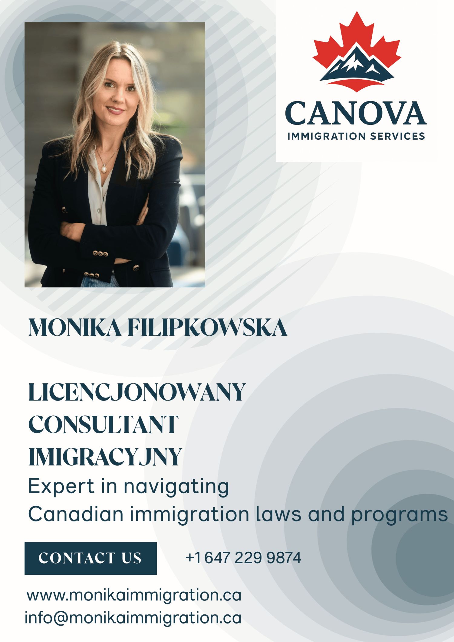 Looking to study, work, visit, or live permanently in Canada? I offer immigration consultations, including: • Tourist visas / eTA • Work permits, LMIA • Study permits • Permanent residence (Express Entry, PNP, Family sponsorship) • Canadian citizenship applications. Document preparation and comprehensive application management. I help you understand the regulations, prepare for the process, and increase your chances of success. We speak Polish, English, and Spanish. Contact: info@monikaimmigration.ca www.monikaimmigration.ca Tel: 647 229 9874