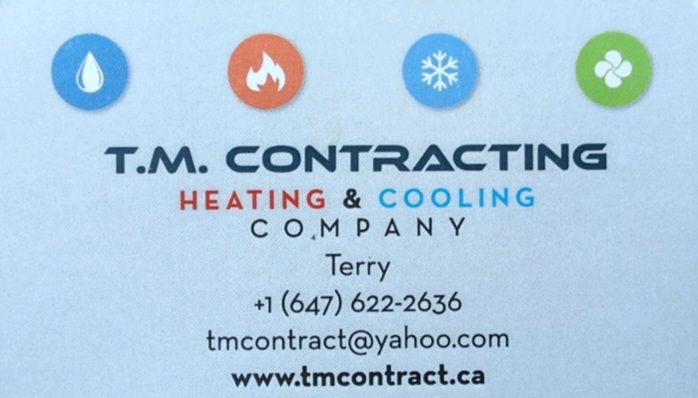 We offer service, installation, and maintenance for all gas appliances, including heat pumps, furnaces, water heaters, vent systems, boilers, snow melting systems, ranges and stoves, gas dryers, underfloor heating, and more. Call 647-622-2636 and mention "Messages" for a discount or visit our website at www.tmcontract.ca